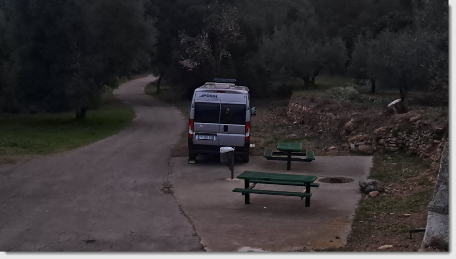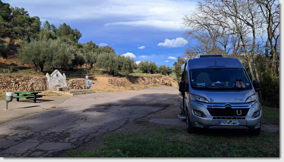 Nous repartons et le vent est déjà assez fort en plaine. Nous avons décidé de retourner près de l'Ermita de Santa Cristina où nous serons à l'abri du vent comme l'autre jour.